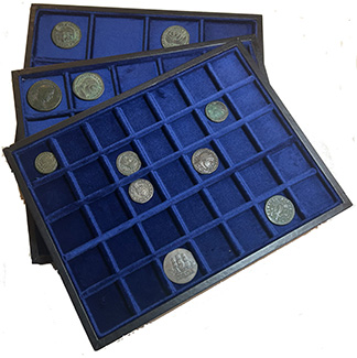 173 Standard Coin Tray, 40 spaces: Most ancients// Blue Velvet $90 New