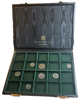 We are proud to carry a premier line of coin storage and carrying cases manufactured by Abafil of Milan, Italy. The beauty of your collection will be enhanced by these handsome and durable cases. The cases are produced from the finest materials and hand finished by Italian craftsmen. The construction is wood with leatherette covering. Coin trays are wood with plush velvet lining and cushioned nylon bottoms.