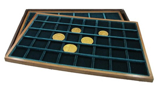 174 Standard Coin Tray, 24 spaces: 1-7/8 x 1-7/8: Most popular size fits standard flippette tickets: silver dollar & crown size// Blue Velvet $90 New