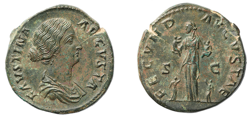 Ancient Coins: ROMAN IMPERIAL BRONZE: Faustina II, wife of Marcus Aurelius, 161-176 A.D.