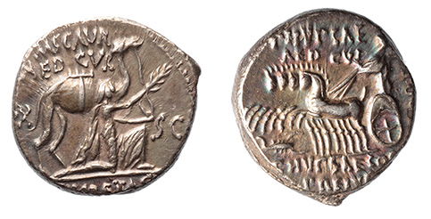 Ancient Coins: ROMAN REPUBLICAN and IMPERATORIAL SILVER: M. Aemilius Scaurus and Pub. Plautius Hypsaeus, 58