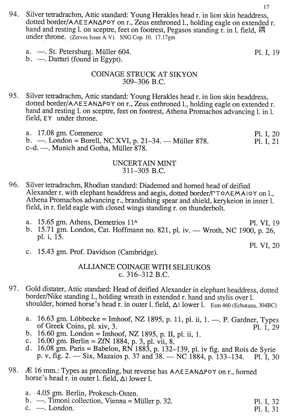 97-98. Nikoles and Ptolemy, Alliance Coinage with Seleukos, c. 316-312 B.C., AV and AE coinage.