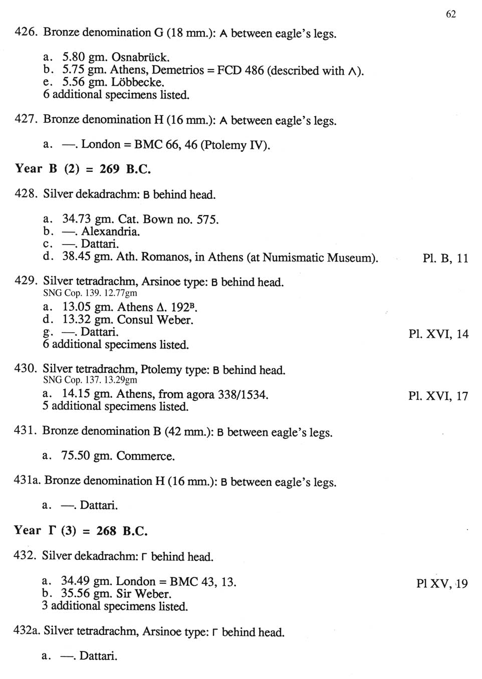 426-432. Ptolemy II Philadelphos, 285-246 B.C., AR dekadrachm, AR tetradrachm and AE denomination