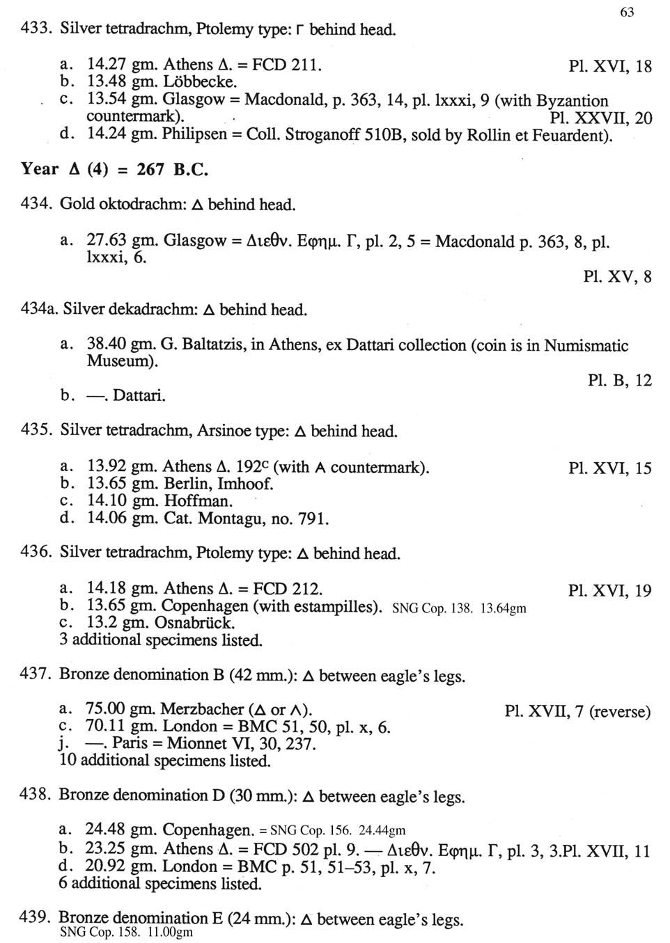 433-439. Ptolemy II Philadelphos, 285-246 B.C., AV oktoodrachm, AR tetradrachm, AR dekadrachm and AE denomination