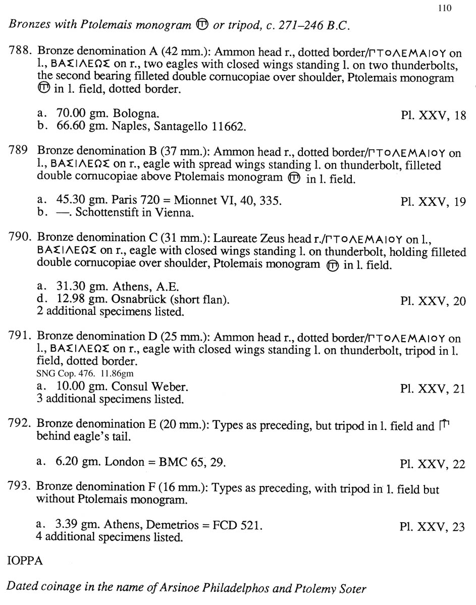 788-793. Ptolemy II Philadelphos, 285-246 B.C., AE Denomination