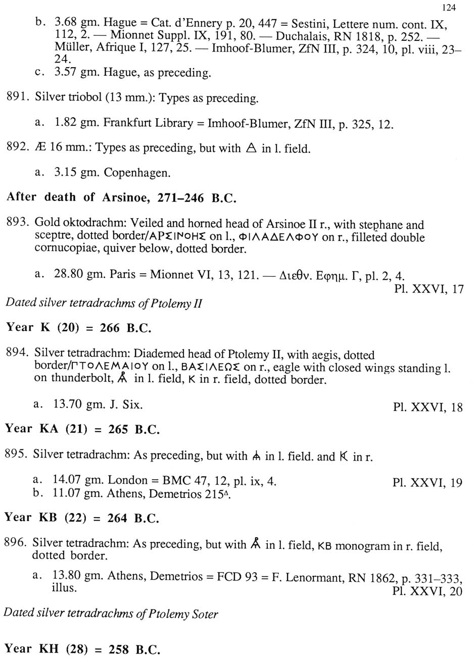 890-896. Ptolemy II Philadelphos, 285-246 B.C., AR tetradrachm, AR triobol, and AE 16mm, AV oktodrachm