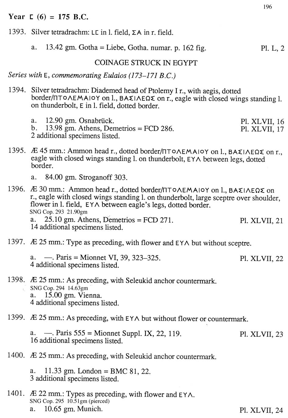 1393-1401. Ptolemy VI Philometer, 181/0-145 B.C., AR tetradrachm, AE 45mm ,AE 30mm, AE 25mm, AE 22mm