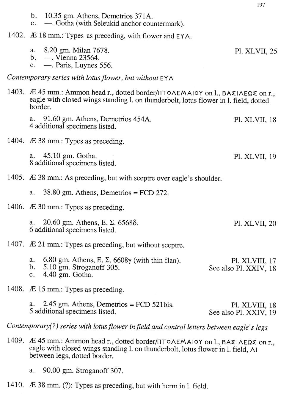 1402-1410. Ptolemy VI Philometer, 181/0-145 B.C., AE 18mm ,AE 45mm, AE 38mm, AE 30mm, AE 21mm, AE 15mm