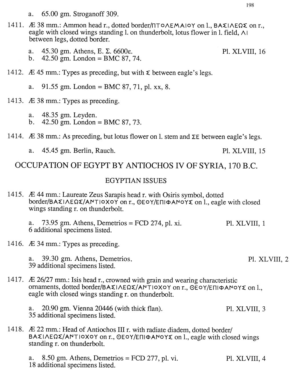 1411-1418. Ptolemy VI Philometer, 181/0-145 B.C., AE 34mm ,AE 45mm, AE 38mm, AE 26/27mm, AE 22mm