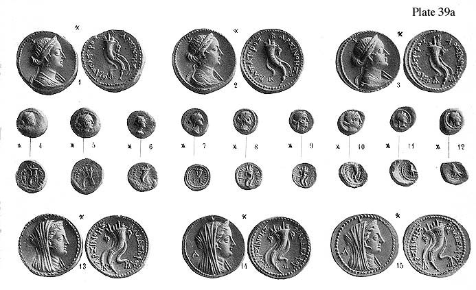 Plate 39a. Arsinoe III AV octodrachms, AE from Cyprus.