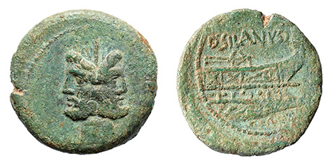 AE As, 10.65g. 27mm. Janus head.  Rev. D SILANVS.  Prow of ship to right.  CR 337/5.  Syd. 649. RBW 1235.  Green patina.